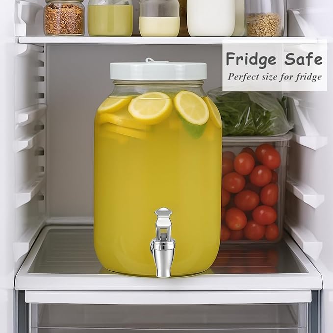 - Great size with super wide mouth, this 1 gallon glass drink pitcher for fridge is perfect for serving your favorite beverages at any gathering. You can easily pour in fruit, ice cubes, and cleaning is a breeze