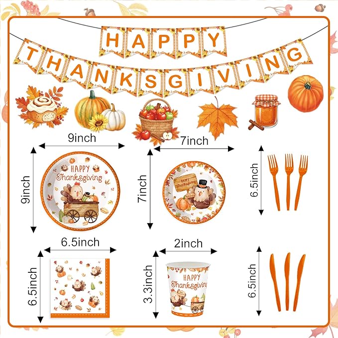 - 【Easy to Clean】This Thanksgiving-themed dinnerware set can be discarded directly after use, which saves cleaning time. Moreover, its paper material is not harmful to the environment, thus saving you a lot of cleaning time and allowing you to have more time to enjoy the party, spending quality time with family, friends and guests.