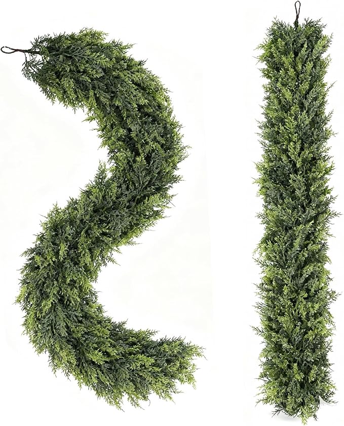 - Realistic Cedar Design Crafted to mimic real cedar foliage, this artificial garland features lush, layered pine branches in vibrant green hues that bring a natural charm to your holiday decor.