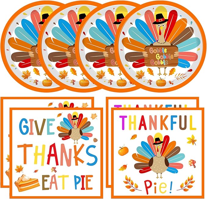 - Let’ talk turkey: The package includes, 20 pcs 7 inch gooble gooble paper dessert plates, 20 pcs turkey paper napkins (3ply, 6.5” x 6.5”folded),Great for the whole family and friends gathering for fun! Keep calm and enjoy fall.