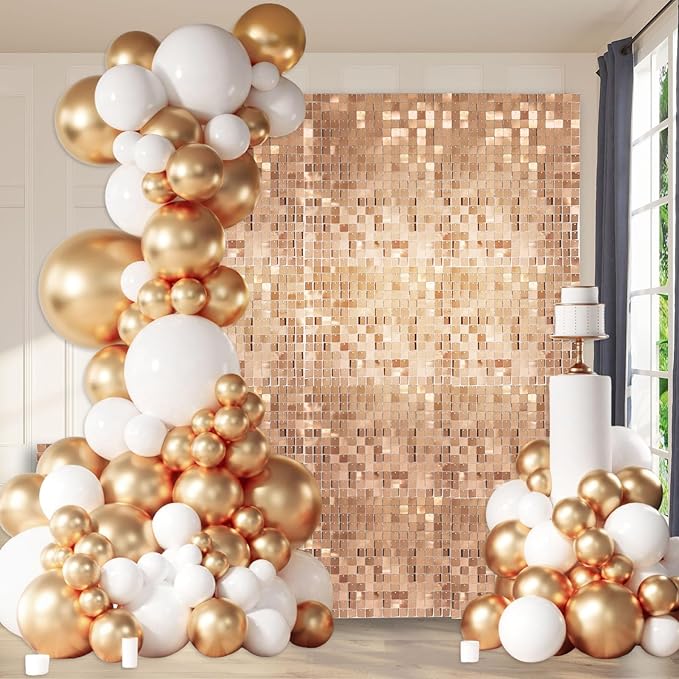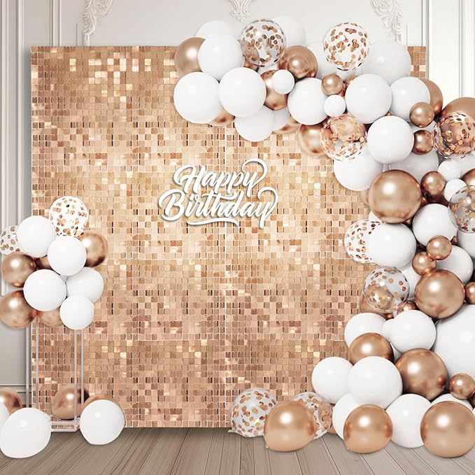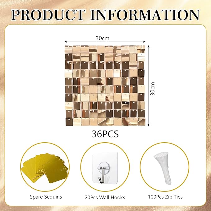 36 PCS Champagne Shimmer Wall Backdrop, Square Sequin Photo Backdrops Panel, Glitter Wall Background for Birthdays, Weddings, Halloween, Engagements, Disco Bachelorette Party Decoration (6FTx6FT)