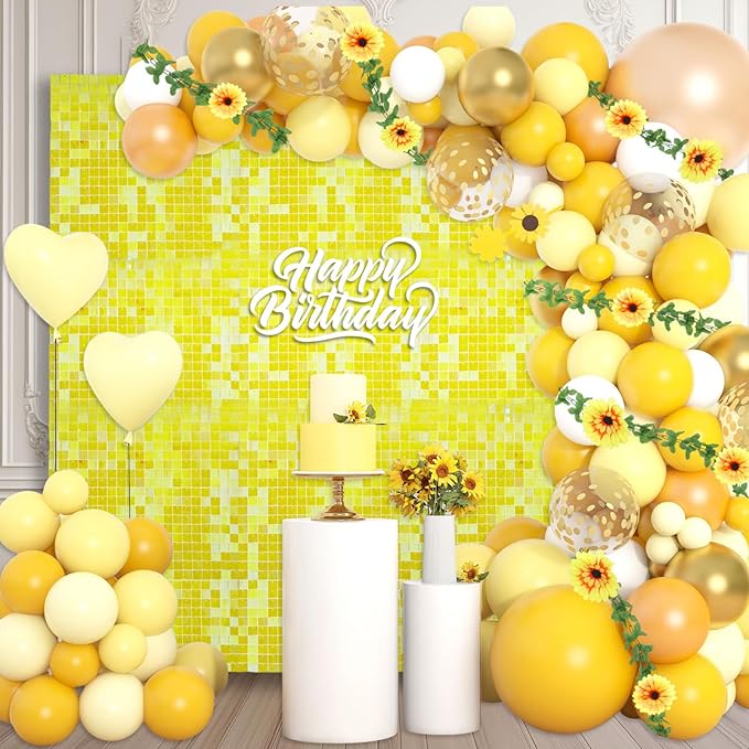 36 PCS Colorful Yellow Shimmer Wall Backdrop, Square Sequin Photo Backdrops Panel, Glitter Wall Background for Birthdays, Weddings, Halloween, Engagements, Disco Bachelorette Party Decoration (6x6FT)