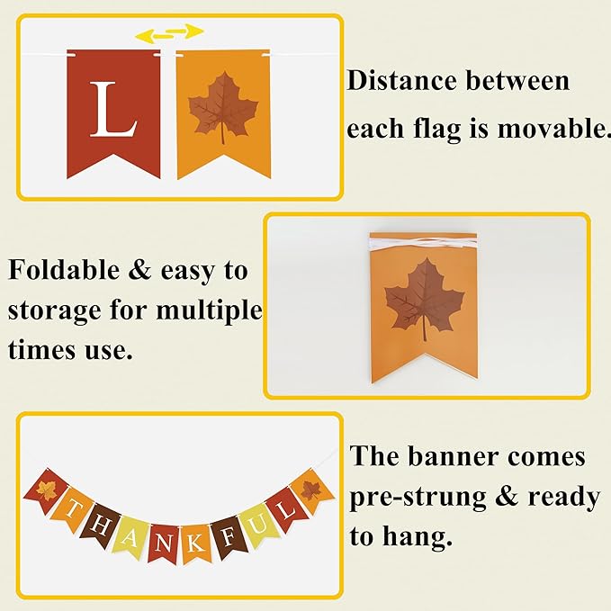 - Sturdy material: The thanksgiving banner with maple leaves is made of quality cardstock, sturdy and not easy to break, bright colors and vivid pattern bringing more fun and lovely vibe to your party, classroom, office, etc., foldable and easily stored for year after year use