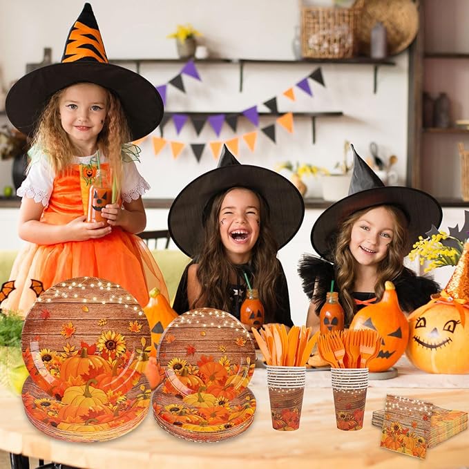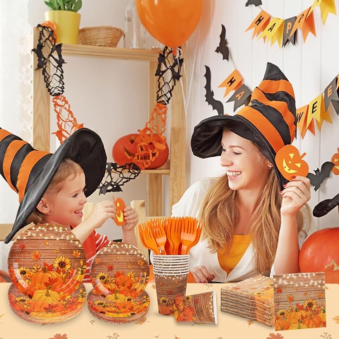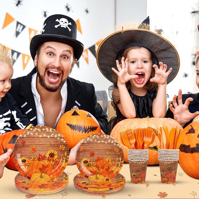- Pumpkin Design: Our fall paper plates and napkins feature blooming golden sunflowers, harvested large pumpkins and vintage wood grain backgrounds, adding a delightful touch to your table setting that will impress your guests at any Thanksgiving or fall-themed celebration