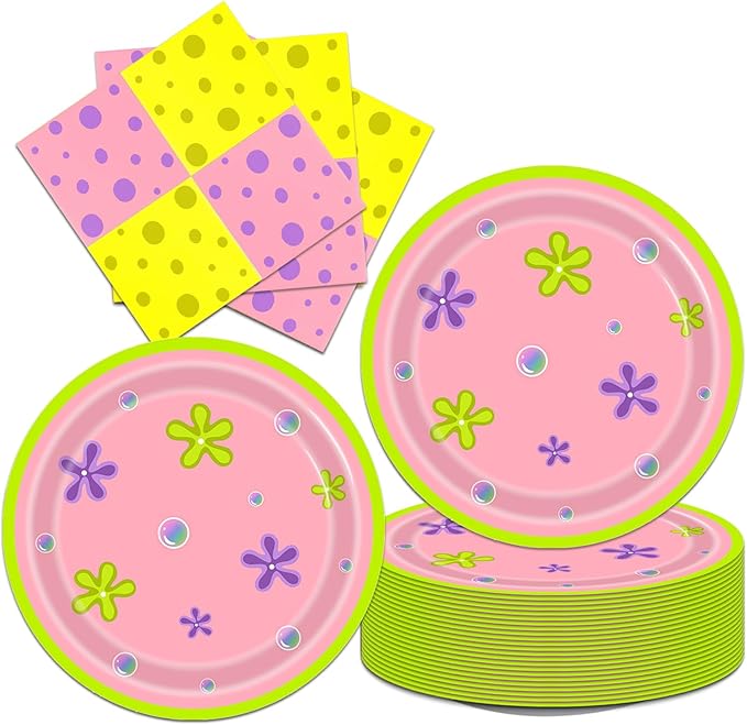 40Pcs Yellow Sponge Cartoon Birthday Plates and Napkins Party Decorations,Yellow and Pink Sponge Themed Party or Baby Shower Supplies Set for 20 Guests