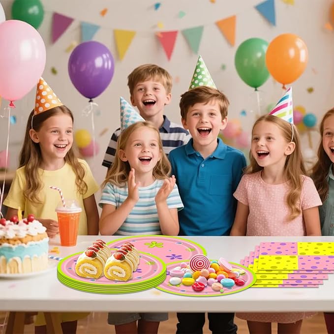 - Cheerful Yellow & Pink Cartoon Design: Set against a pink base, accented with bright yellow details for a sweet contrast. The color combo feels warm and joyful—no faded prints or blurry outlines—and plates and napkins match seamlessly, turning your party table into a “mini cartoon corner” that charms guests of all ages.