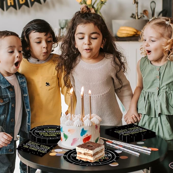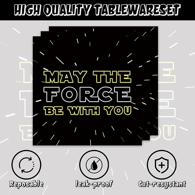 - Festive Star Design for Every Celebration: The color palette feels immersive and galactic, with no faded prints or blurry details—plates and napkins match perfectly, turning your party table into a “mini starry hub” that leans into the beloved force theme.