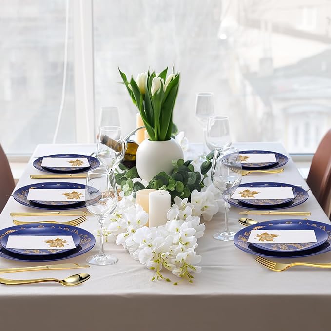 - Thanksgiving Day Style Design: experience the magic of thanksgiving with our navy blue plates, decorated with hot stamping harvest pattern and thanksgiving day text for an added touch of style, the wide range of styles ensures these plates seamlessly blend with your existing decoration, bringing an added touch of elegance to your meal