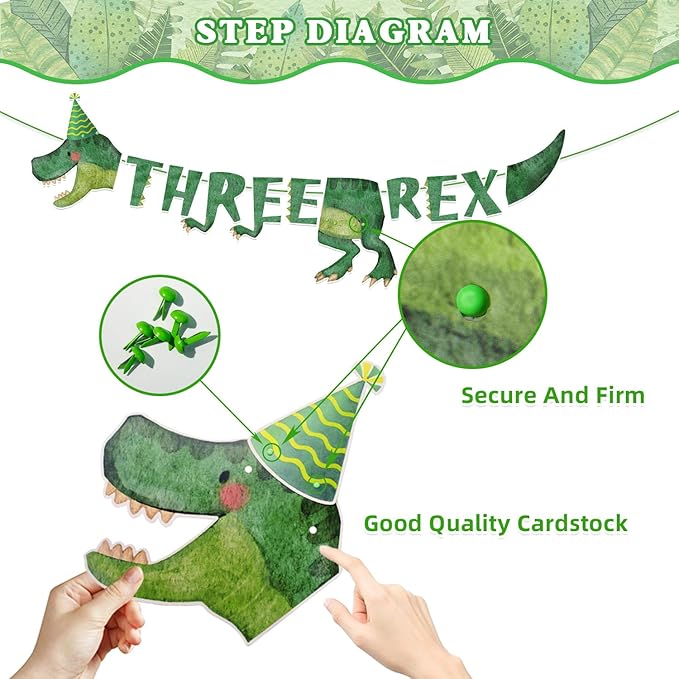 - π MULTI-USE DECOR & GROWTH CELEBRATION Banner and "3-Rex" toppers capture milestone memories. Perfect for preschool parties or dino-themed playdates!