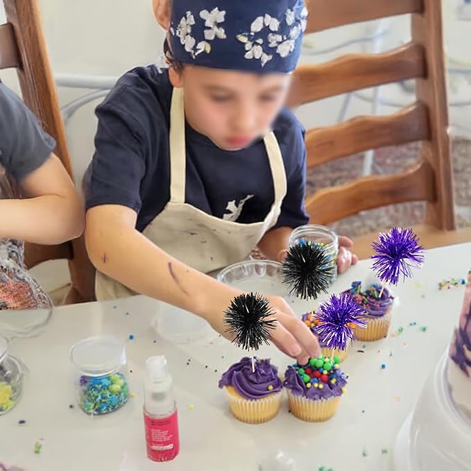 Ephlyn 30Pcs Foil Firework Cupcake Toppers Sparkle Tinsel Cupcake Picks Happy Birthday Cake Decorations Drink Stirrers Cocktail Food Toothpicks for Baby Shower Graduation Party Supplies Black Purple