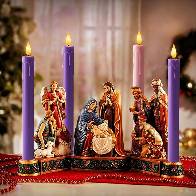 - 9.6" Advent Candle Set: This is a wonderful set, and it would make a lovely gift. 3 purple and 1 pink battery taper candles, 0.78" D x 9.6"H, just like the real candle size perfect for advent wreath candles, enjoy the beauty of the Christmas advent candle set with the convenience and safety of battery powered taper candles.