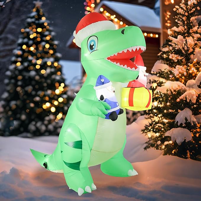 Taman 8 FT Christmas Inflatable Decorations, Large Dinosaur with Santa Claus Propeller Built-in Bright LED Light Blow Up for Yard, Garden,Lawn Outdoor Holiday Yard Decorations