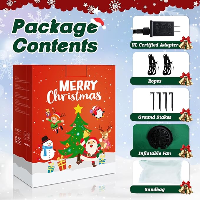 - The package includes an inflatable decoration, a few fastening ropes and ground stakes,and there are small hooks on both sides of the inflatable decoation to secure the nails, Each inflatable bottom is also equipped with a sandbag.You can place it anywhere without worrying about it being blown away by the wind