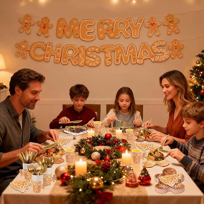 - Value-Packed Set: You’ll receive 50pcs christmas paper plates, 25pcs gingerbread-themed paper cups with 25pcs 3d gingerbread man cards for decorating, 25pcs Christmas tree napkins, and 2 decorative banners. The Christmas dinnerware set disposable offers a variety of styles and ample quantities, saving you the hassle of matching items—the perfect choice for your festive gatherings