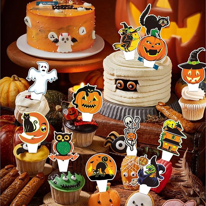 - Halloween Theme: Create a special party with these 24 Halloween cupcake toppers. Each Halloween cupcake topper is perfect for a Halloween-themed party.