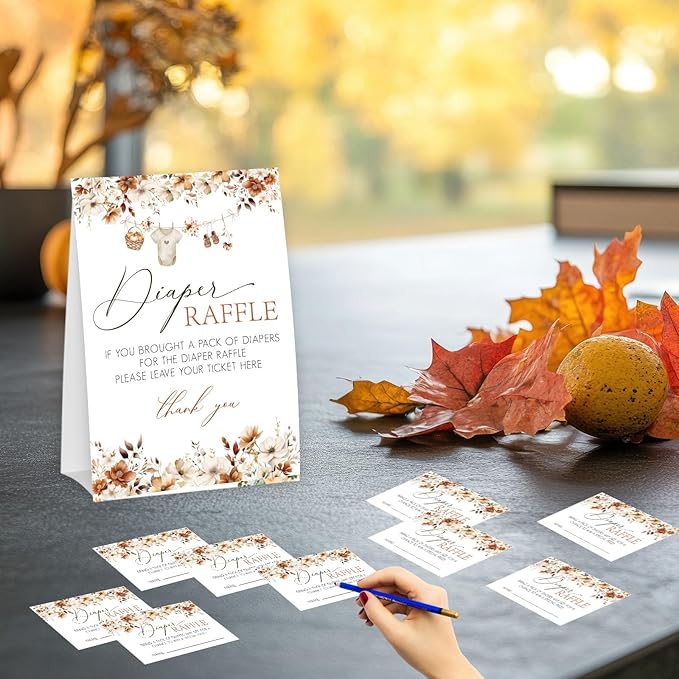 - Autumn Baby Shower Cards: This festive set includes 50 guess cards + 1 matching sign - plenty for all guests to join the fall-themed fun