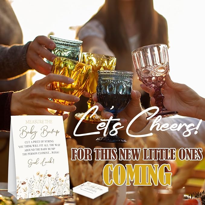 Wildflower Measure The Baby Bump - Thanksgiving Baby Shower Card Set (1 Sign With 50 Guess Cards), Fall Floral Gender Reveal Party Favor Supplies -A18