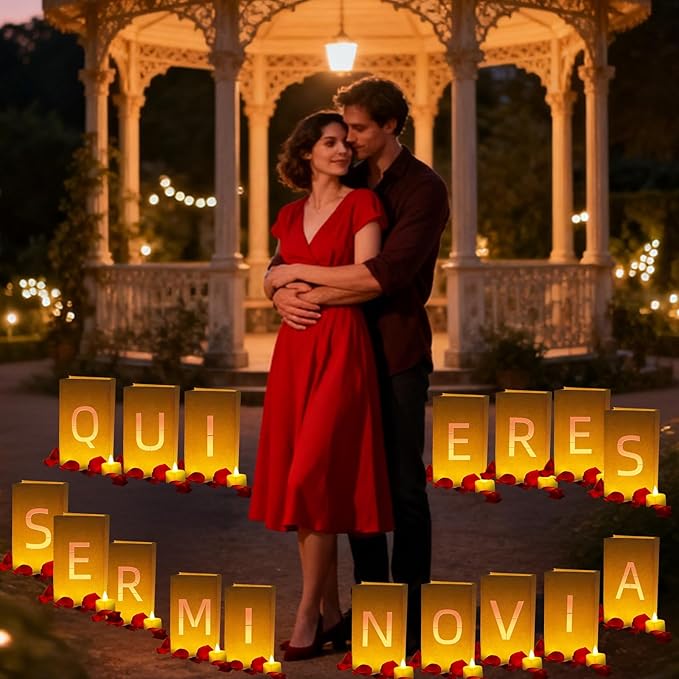 - Surprise Decoration: Make your confession truly unforgettable by incorporating these eye-catching "Quieres Ser Mi Novia" light-up letters. The combination of LED tea lights with other decorative elements will elevate the atmosphere, surprising and delighting your loved one and leaving a lasting impression.