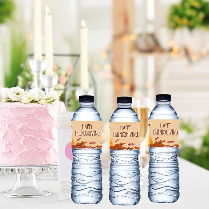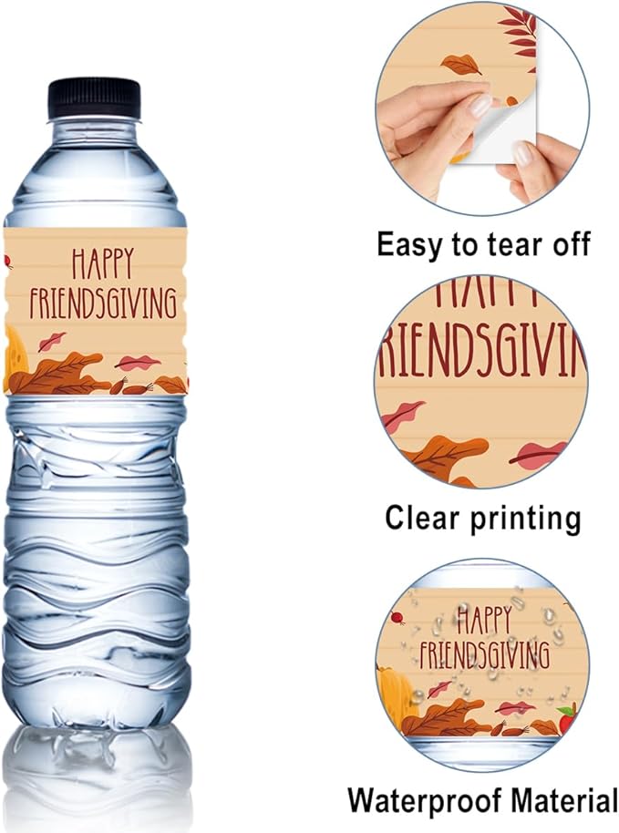100Pcs Happy Friendsgiving Water Bottle Sticker Labels Decorations Waterproof Wrappers for Friends Party Thanksgiving Day Party Supplies