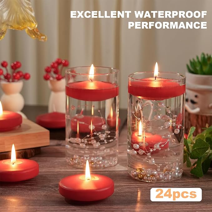 - Lasting 7 Hours Red Floating Candles 3inch: Experience the magic of our floating candles, offering an impressive burn time of 7 hours. Longer-lasting than most larger floating candles options, they ensure unforgettable moments at every event