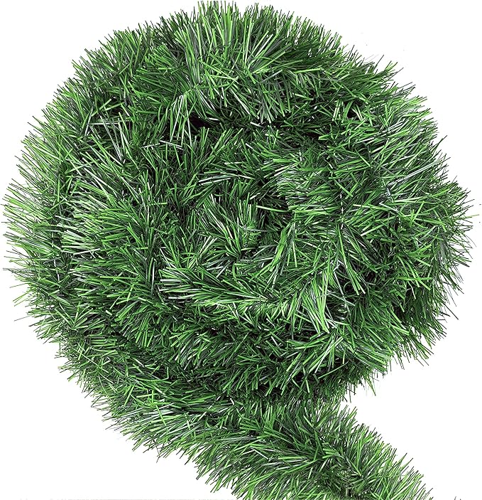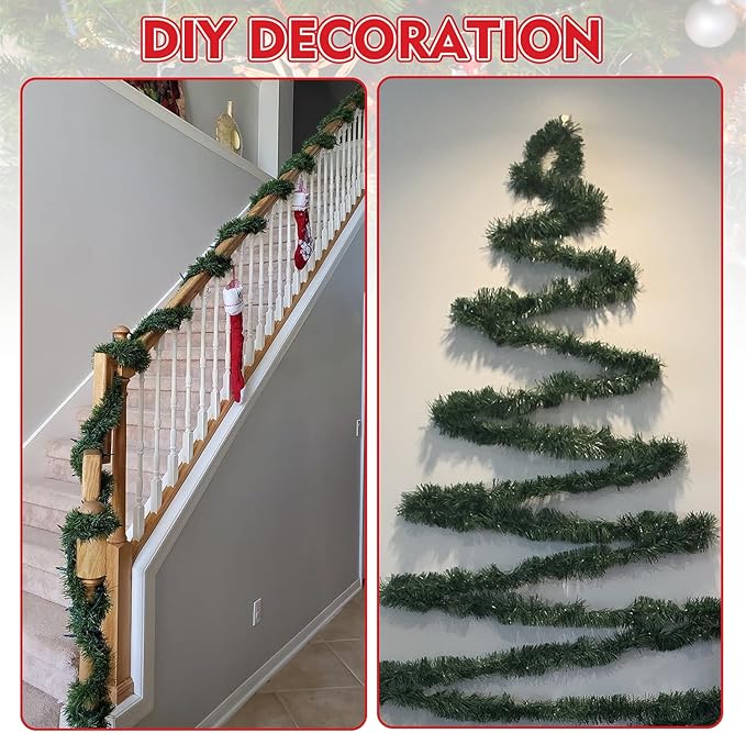 - Realistic Look: These green tinsel garland are made of soft and durable materials with lightweight metal wire in the middle, which has excellent flexibility and durability. Soft texture, easy to place and trim. Unlike other flower garlands, our product wonโt fall apart, allowing you to use it both indoors and outdoors!