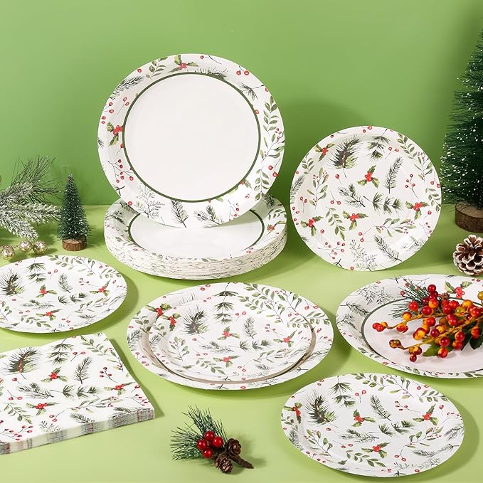 - Easy&Convenient---Our Christmas disposable dinnerware sets are made of disposable paper material, which saves you time and enjoys the party without having to wash dishes after the party, You can spend more time with your families and friends. These Christmas holly berries pattern paper plates can make you take beautiful photos and leave a good memory with family and friends.