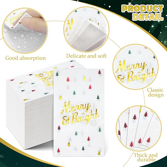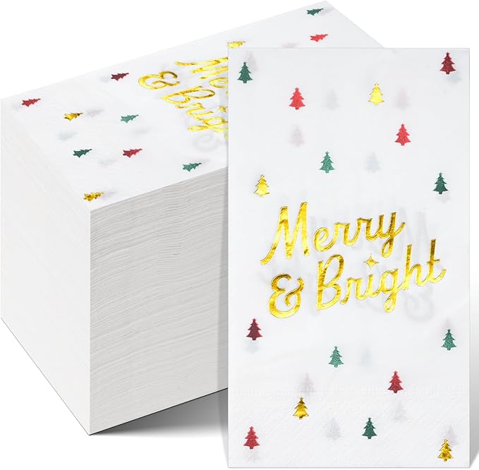 - Elegant Gold Foil Design — Each napkin features Merry & Bright in shining gold foil with colorful foil Christmas trees, adding sparkle to your merry and bright Christmas decor and festive table setup
