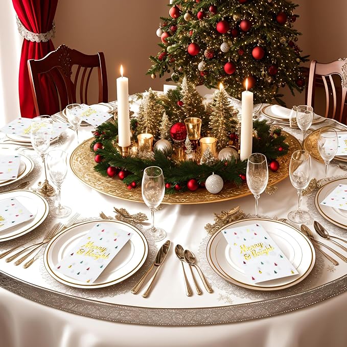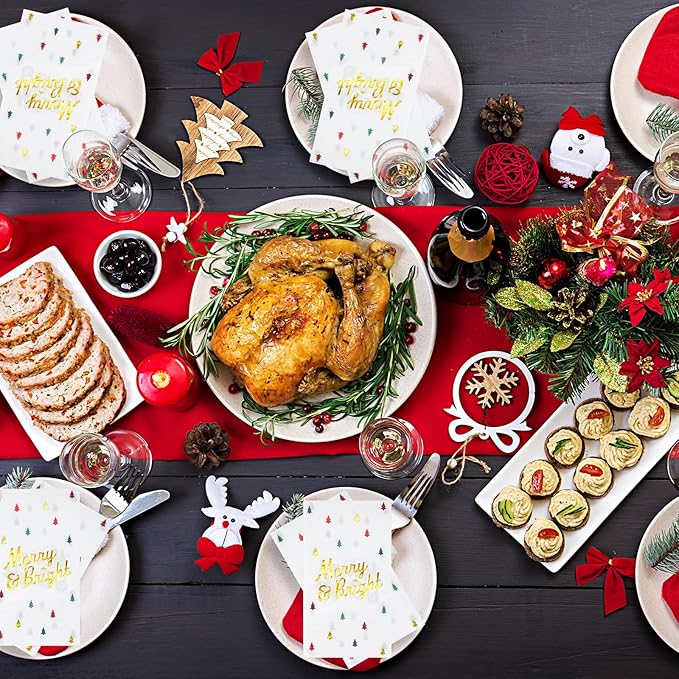 - Versatile Holiday Use — Perfect for xmas napkins, holiday napkins, or merry Christmas napkins at Christmas dinners, winter weddings, or seasonal gatherings — keeping cleanup easy and your table shining bright