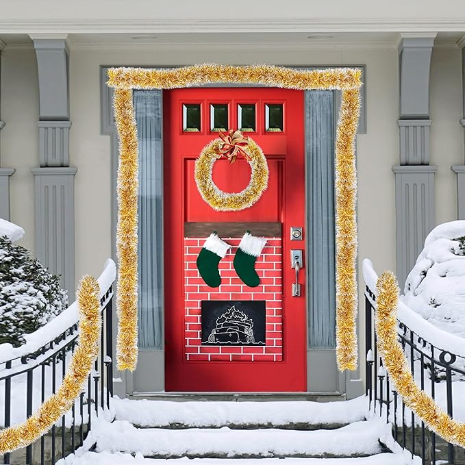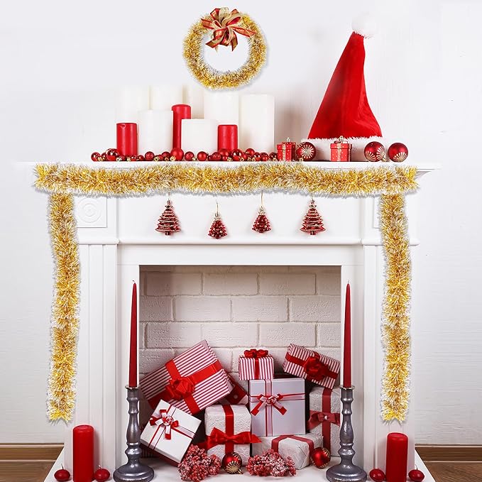 - 50FT Extra Long Christmas Garland - Our 50FT gold and white Christmas tinsel garland instantly brightens your home with a festive, elegant glow. Perfect for wrapping around Christmas trees, stair railings, fireplaces, or mantels, this shiny garland adds a magical winter sparkle to your holiday decorations.