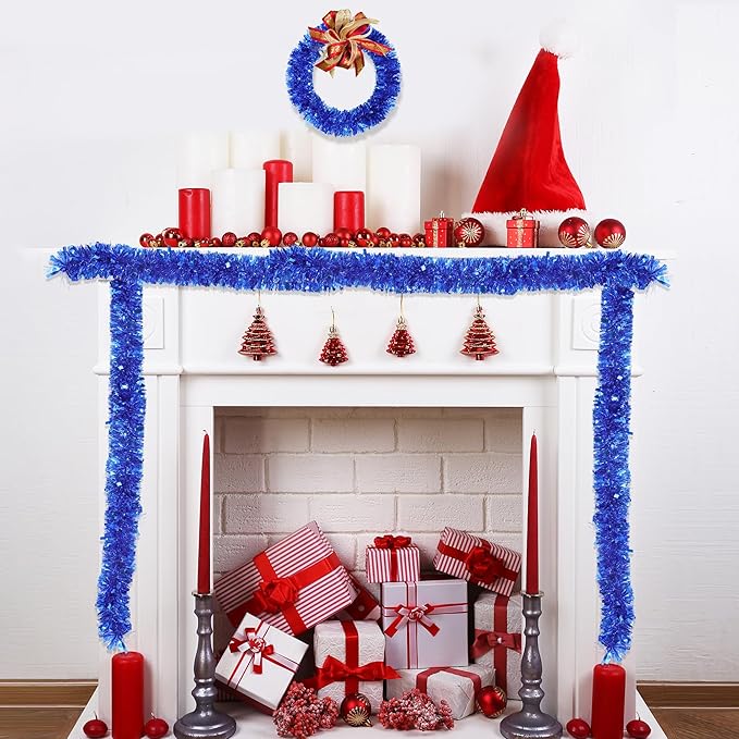 - 50FT Extra Long Christmas Garland – Our 50FT blue mixed tinsel garland instantly brightens your home with a festive, elegant glow. Perfect for wrapping around Christmas trees, stair railings, fireplaces, or mantels, this shiny garland adds a magical winter sparkle to your holiday decorations.