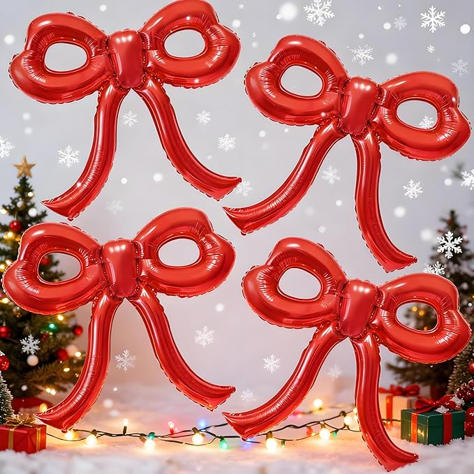 - Vivid Bow Balloons: You will get 4 giant red bow foil balloons with a size of 30x28 inches, 1 white ribbon and 1 straw, the quantity and size are enough to decorate any of your parties. Bow decor has a vivid and eye-catching appearance, which can add a touch of elegance and romantic atmosphere to any party, and is a great choice for girls' parties of any age.