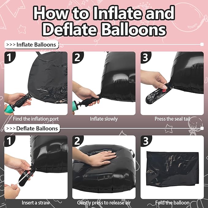 - Valuable Package: The set includes 2 straws and 25 square foil balloons (13 metal black square balloons+ 12 pearl pink square balloons). The balloons measure 19×19 inches before inflation and 13×13 inches after inflation, meeting various decorative needs