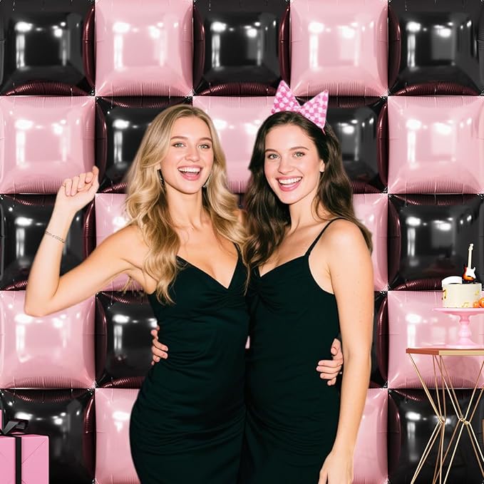 - Considerate Service Guarantee: To prevent bursting, do not inflate balloons beyond 90%. If you encounter any issues with your metal black & pearl pink square foil balloon wall, contact us via email anytime