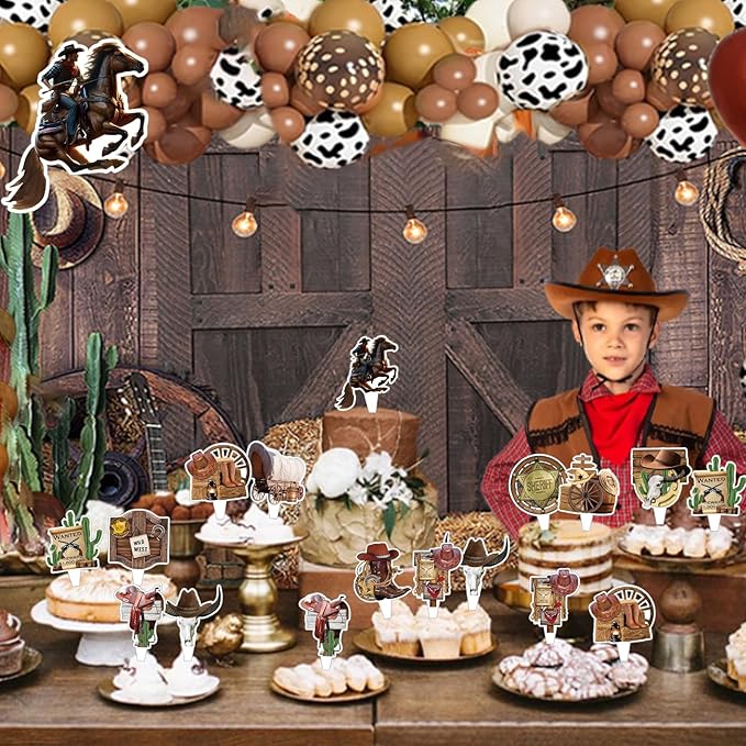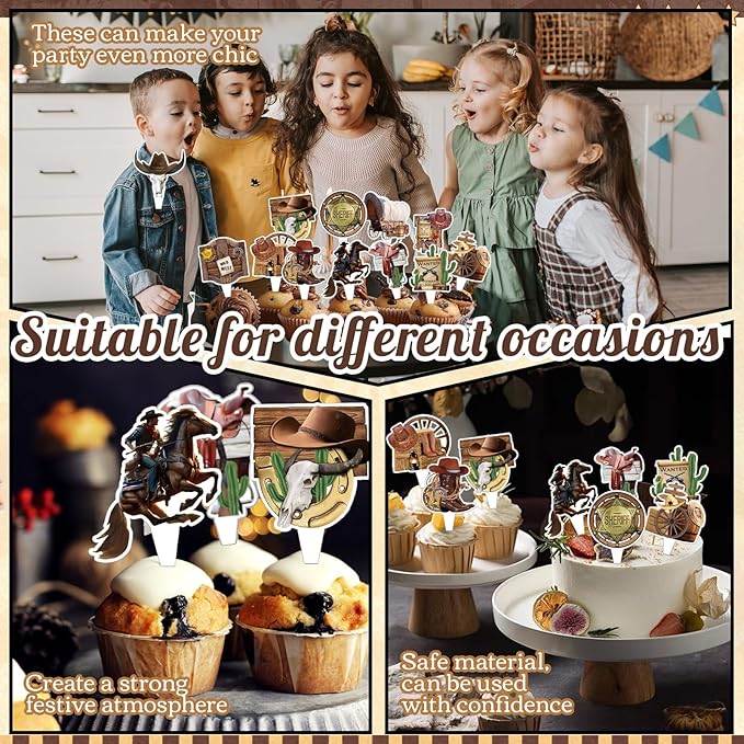 - SAFE MATERIAL:Our Western Cowboy theme cake decorations are made high-quality card paper, safe and recyclable. Patterns are vivid without fading.All cupcake decors are completely safe for children and adults!