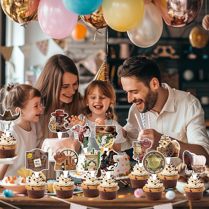 - Wild West THEME:Make a special party with these 12 styles of Western Cowboy cupcake toppers. Every Safari was designed for Wild theme party.