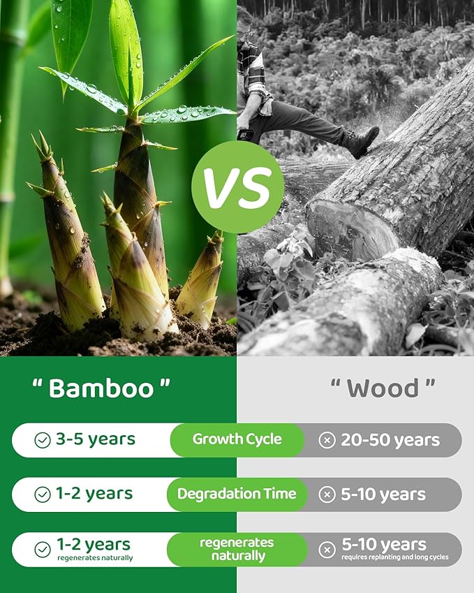 - Plastic-Free, Fully Biodegradable - 100% natural bamboo material, no plastic or harmful chemicals. Faster degradation than wood(5 times faster)
