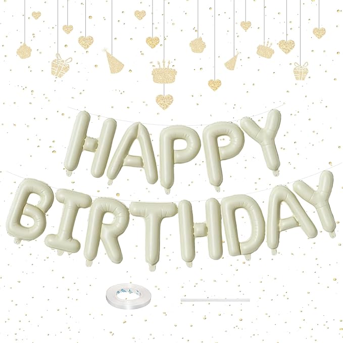 - Easy to Set Up - The ivory white "HAPPY BIRTHDAY" balloon sign features a self-sealing valve that requires no knots for easy inflation and deflation. It can be inflated with air or helium, requiring only 90% of the balloon to be fully inflated. Once filled, press the balloon's valve to seal it. It can be reused. After use, just insert the straw into the valve and press gently until the gas is completely discharged, and fold it for storage.If you want to achieve a floating effect, you can use helium for inflating