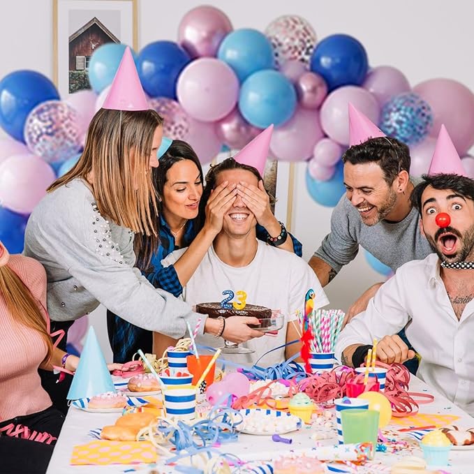 Pink and Blue Balloon, 50Pcs 12 Inch Pastel Pink Blue Purple Confetti, Royal and Metallic Confetti Balloons for Birthday, Baby Shower, Gender Reveal Supplies