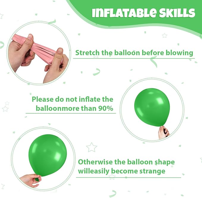 - Balloon material: All balloons are made of natural latex, and each balloon has been strictly hand-tested. The balloons are elastic, non-toxic, harmless and safe. They can be filled with air or helium, and it is recommended to use with a balloon pump