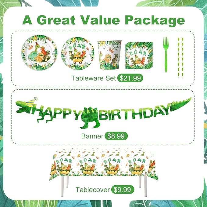 - 【Incredible Value for a Complete Dino Party】 Why buy expensive individual items? Our value-packed bundle provides complete dinosaur party supplies for a whole pack of kids (up to 25 guests)! It's the most affordable and convenient way to throw an epic dino birthday party that will have all the kids talking about it for weeks. Create a Jurassic jungle adventure without breaking the bank!