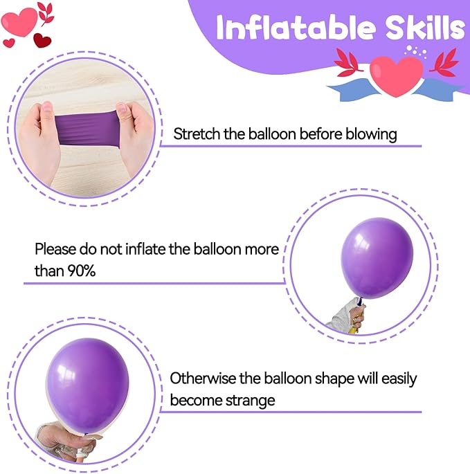 - Balloon material: All balloons are made of natural latex, and each balloon has been strictly hand-tested. The balloons are elastic, non-toxic, harmless and safe. They can be filled with air or helium, and it is recommended to use with a balloon pump