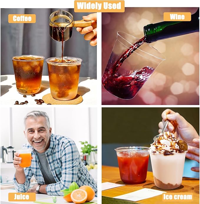 - Packaging includes: You will receive 100 clear plastic cups, 12oz plastic wine glasses measuring about 3.75x3.5 inches, enough for your party use. These clear disposable wine glasses suitable for gatherings of various scales, perfect for enjoying cocktails, whiskey, and wine.