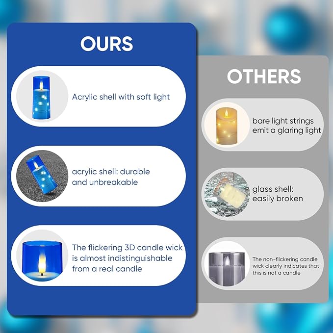 - 【Safe & Flameless】: These flickering Flameless candles offer the beauty of traditional candles without the risk of an open flame. Enjoy peace of mind as they provide a safe option, especially in homes with children or pets where you don't have to worry about fire.