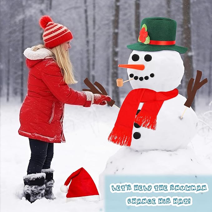 - 【DIY Snowman Making Kit】This kit includes two hats - a green hat and a red Santa hat, so you can switch hats on your snowman. This DIY snowman decoration kit helps you create a one-of-a-kind snowman. It adds winter cheer to your yard with creative fun, surprising passersby and neighbors. While crafting the most beautiful snowman in your yard, share the winter joy with family and friends!