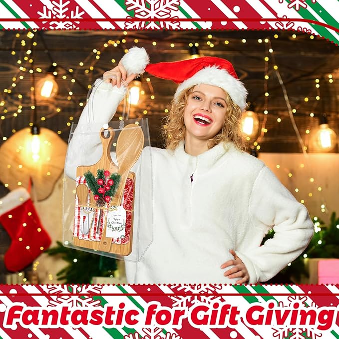 - Christmas Kitchen Gift Set: This complete gift set includes 12 bamboo Christmas charcuterie platters, 12 knives, 12 forks, 12 kitchen towels, 12 gift tags, 12 artificial berries, 12 clear gift wrapping bags and 2 rope; the bamboo Christmas kitchen set is an ideal gift for Christmas friends gatherings, and one set can meet all your needs