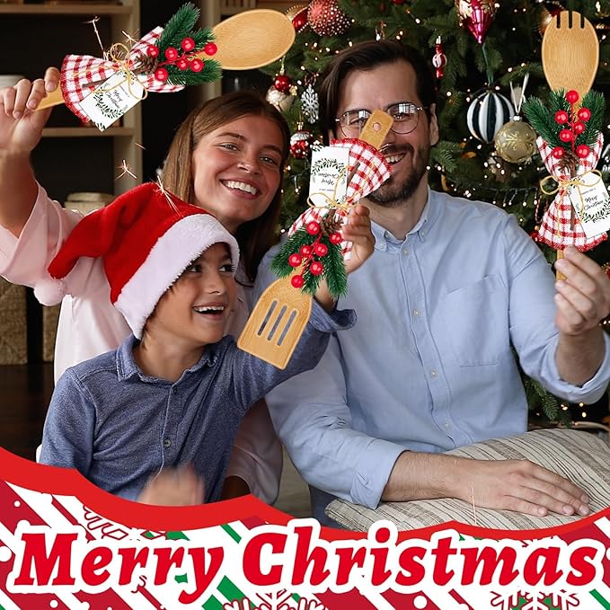 - CHRISTMAS KITCHEN GIFT SET: This complete gift set includes 12 pieces of Christmas kitchen utensils, 12 red and white towels, 12 Christmas tags, 12 artificial berries, 1 rope; The bamboo Christmas kitchen set is an ideal gift for Christmas friends gatherings, one set can meet all your needs