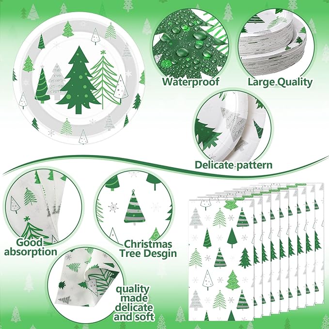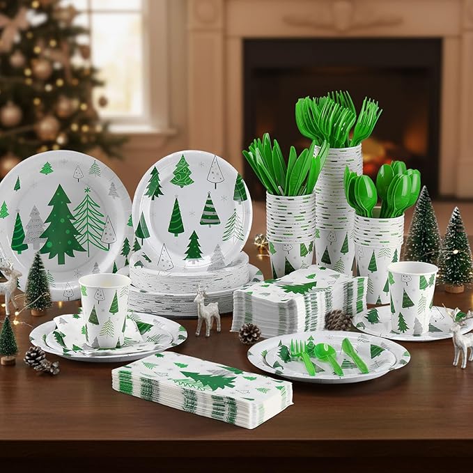 - Easy to Use: using our Christmas tree disposable tableware saves you time and energy; Setting up is a breeze as you just need to unpackaged the items; After the party, clean up is quick and effortless as the items are disposable; Spend more time enjoying the party and less time worrying about the aftermath