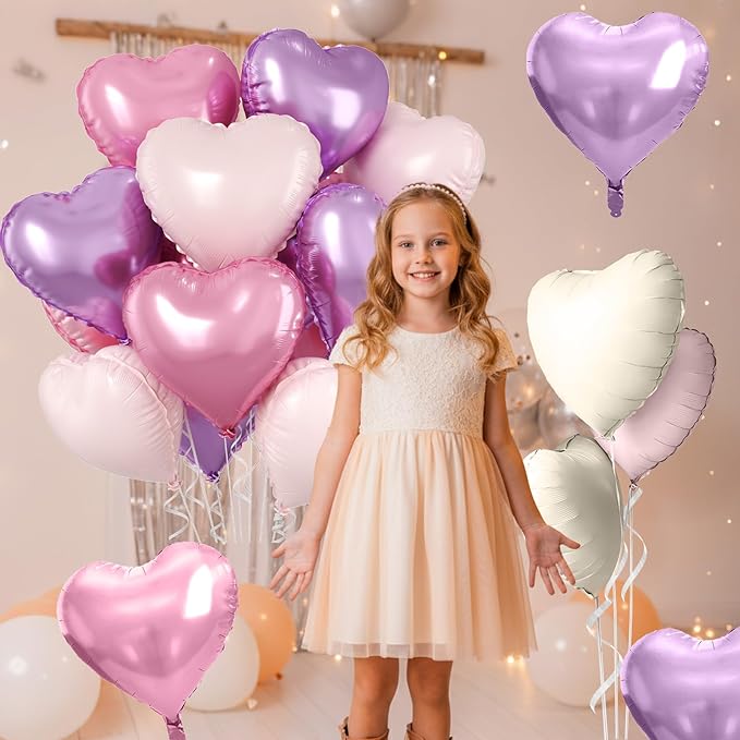 - 10 Pcs Pink Purple Heart Balloons: Our package includes 4 x 18 inch pearl light pink heart foil balloons, 3 x 18 inch pearl light purple heart foil balloons, 3 x 18 inch matte baby pink heart foil balloons, 1 x straw, and 1 x white ribbon. These pastel balloons create a dreamy and feminine look, ideal for birthdays, weddings, bridal showers, baby showers, and Valentine’s Day celebrations.