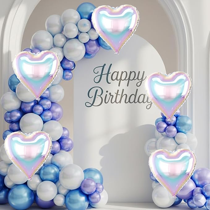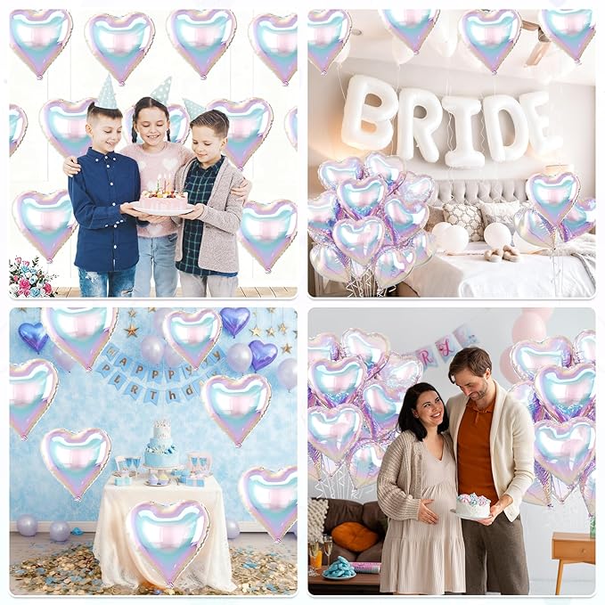 - Romantic and Versatile Decoration: Whether for a bridal shower, wedding, birthday, engagement, baby shower, or Valentine’s Day, these iridescent rainbow heart balloons are a beautiful choice. Use them to create balloon bouquets, decorate photo backdrops, or add a whimsical shimmer to your event space.