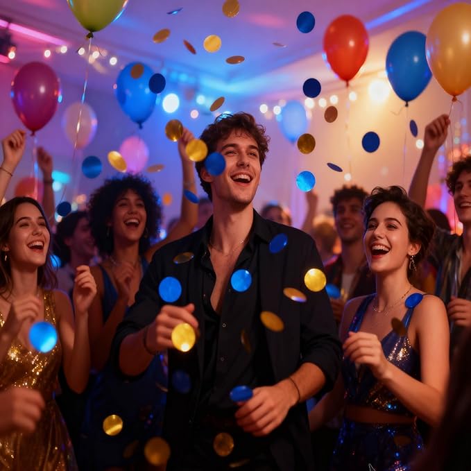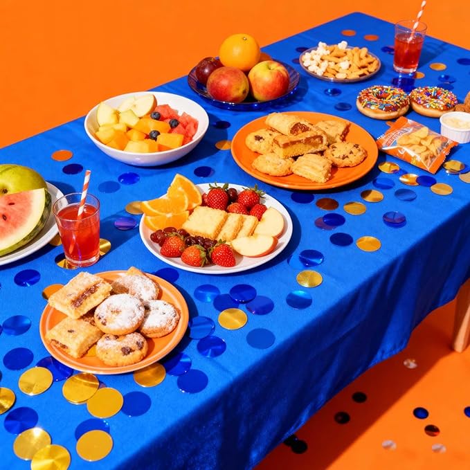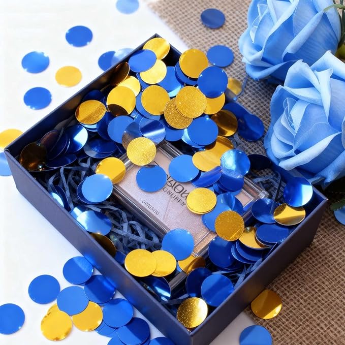 Blue and Gold Circular Foil Confetti Decorations: Party Table Metallic Confetti for Balloon Filling, Wedding, Graduation Party Decorations, 100g per Pack